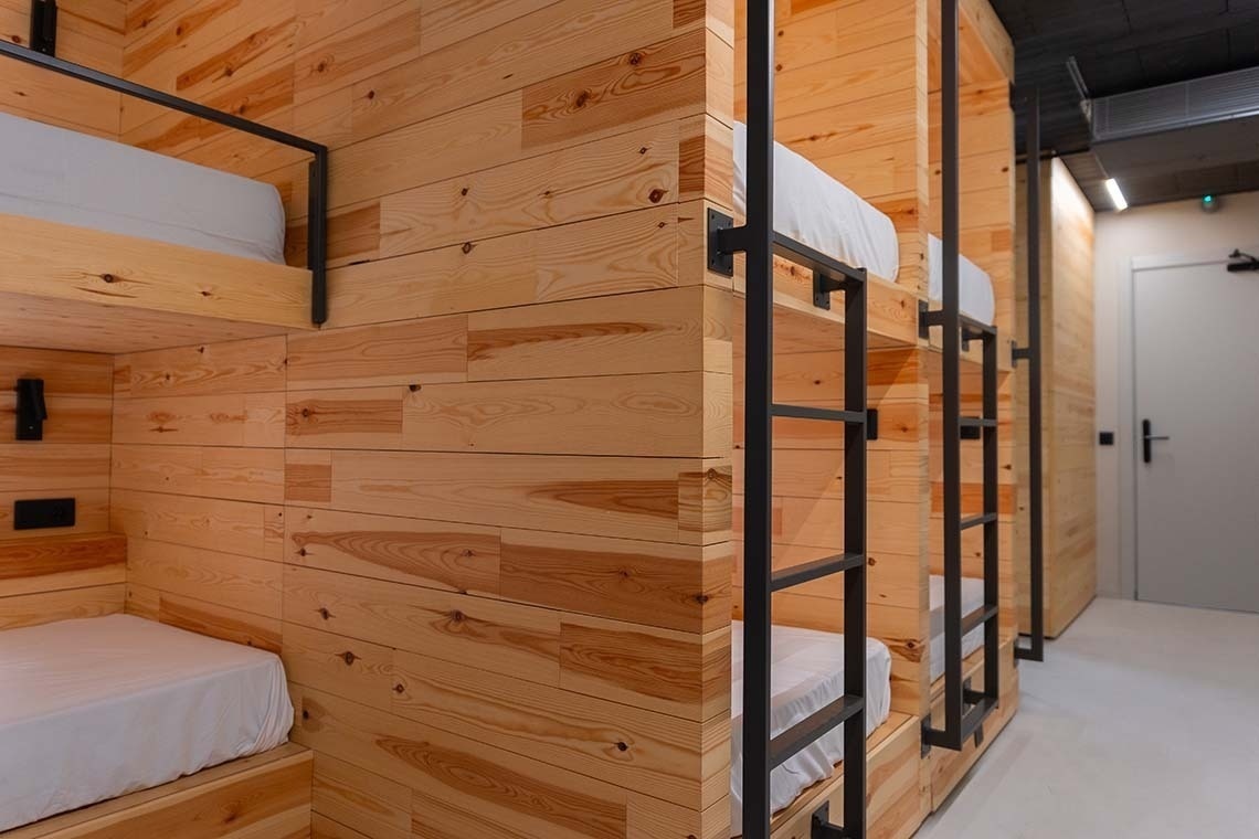 Equipada con wifi gratuito y un diseño moderno, esta habitación combina funcionalidad y estilo. Disfruta de la comodidad de un alojamiento pensado para tu descanso, con enchufes personales, luces de lectura y armarios individuales con cierre electrónico para guardar tus pertenencias. Una opción ideal para quienes buscan compartir sin renunciar al confort y la calidad.
